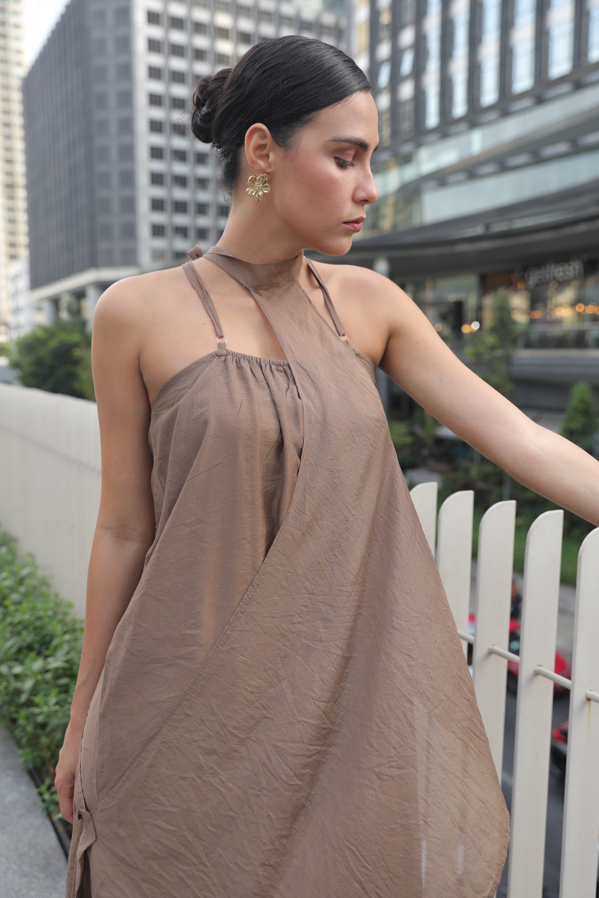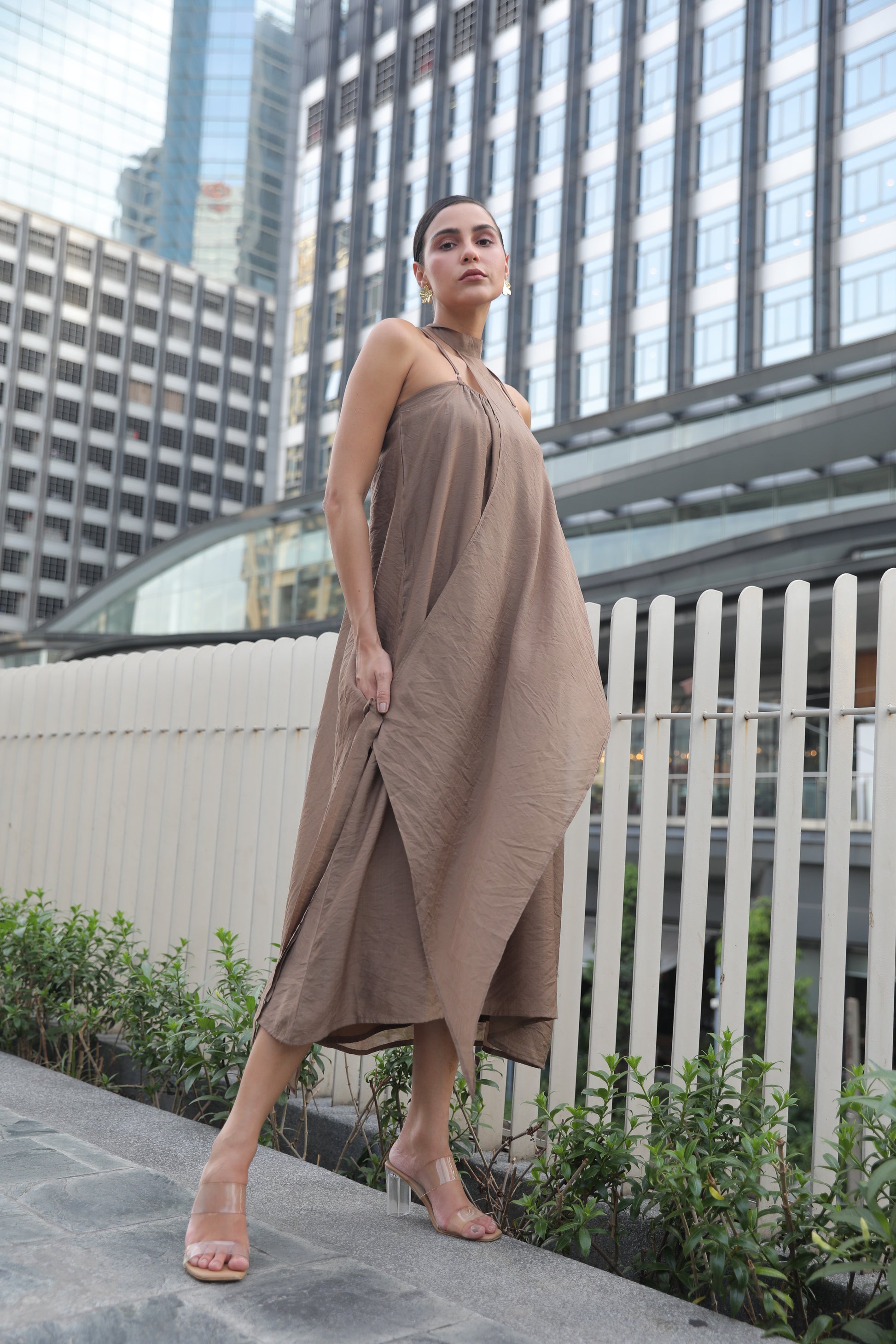 Bask in effortless elegance with this rich mocha-brown summer dress, designed for warm days and golden evenings. Crafted from lightweight, breathable fabric, it drapes beautifully over the body while keeping you cool under the sun. The earthy brown hue captures the warmth of sun-kissed sand and sunset skies, making it the perfect companion for beachside brunches, coastal strolls, and sunset cocktails.