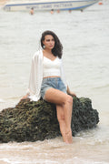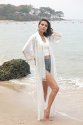 Light, airy, and effortlessly coastal, the Ocean Whisper Shell Shrug is your perfect beachside layering piece. Designed in a flowing longline silhouette, this white shrug adds graceful movement and relaxed elegance to any swimwear or resort look.